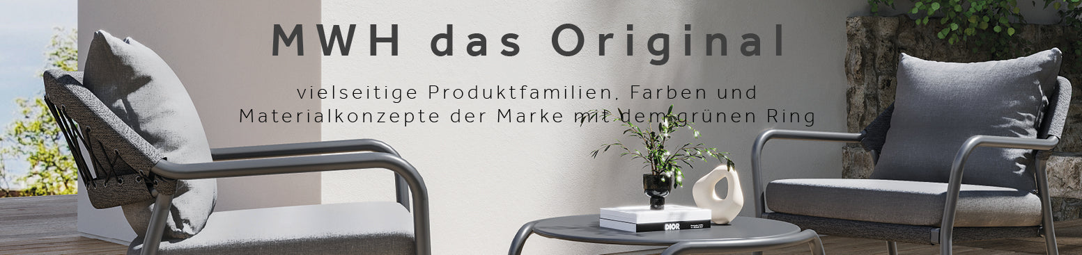 MWH – das Original. Einfach näher am Leben. Damit die Auszeit vom Alltag auf Balkon und Terrasse oder im Garten jederzeit außergewöhnlich erholsam bleibt: mit vielseitigen Produktfamilien, Farb- und Materialkonzepten der Marke mit dem grünen Ring.
