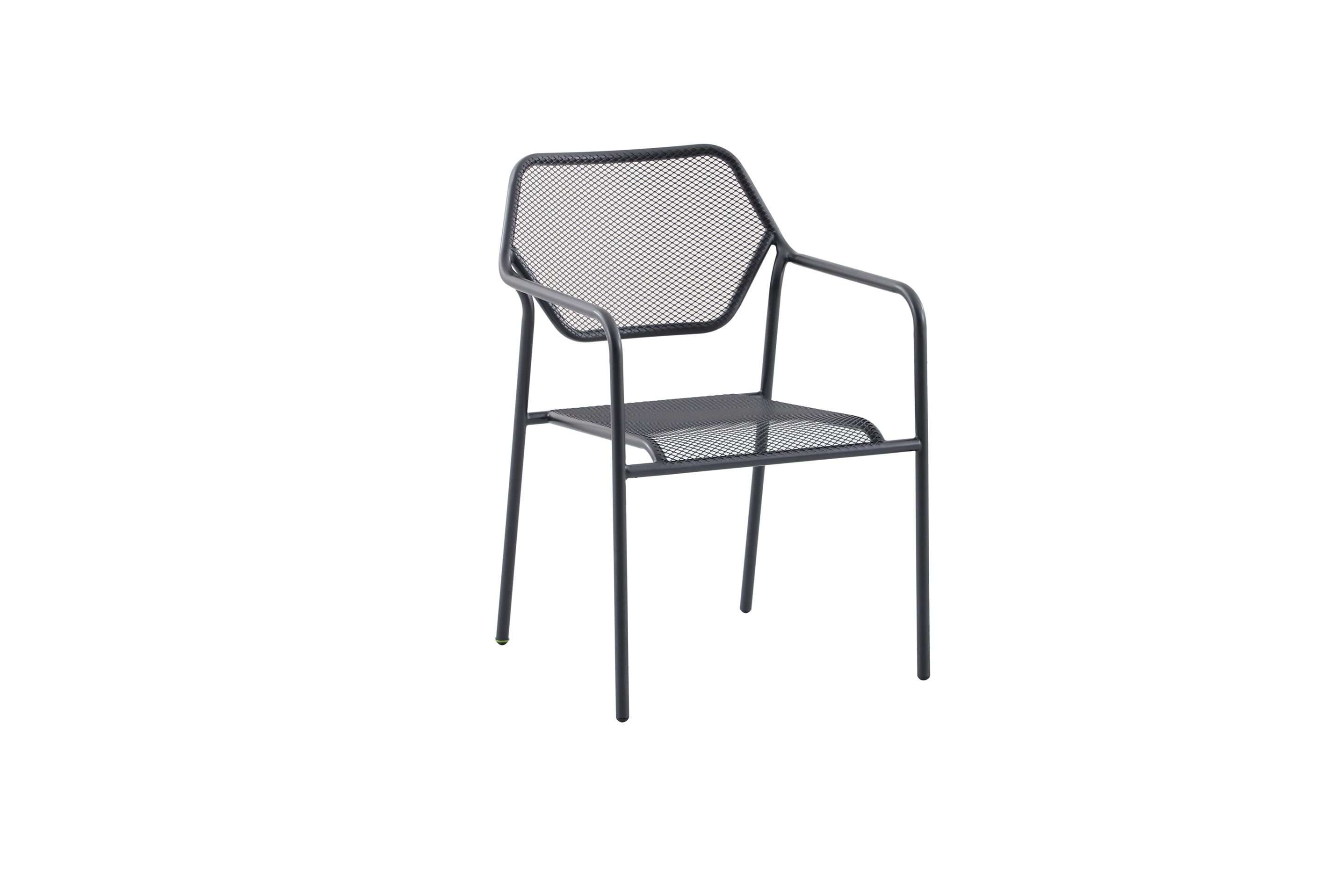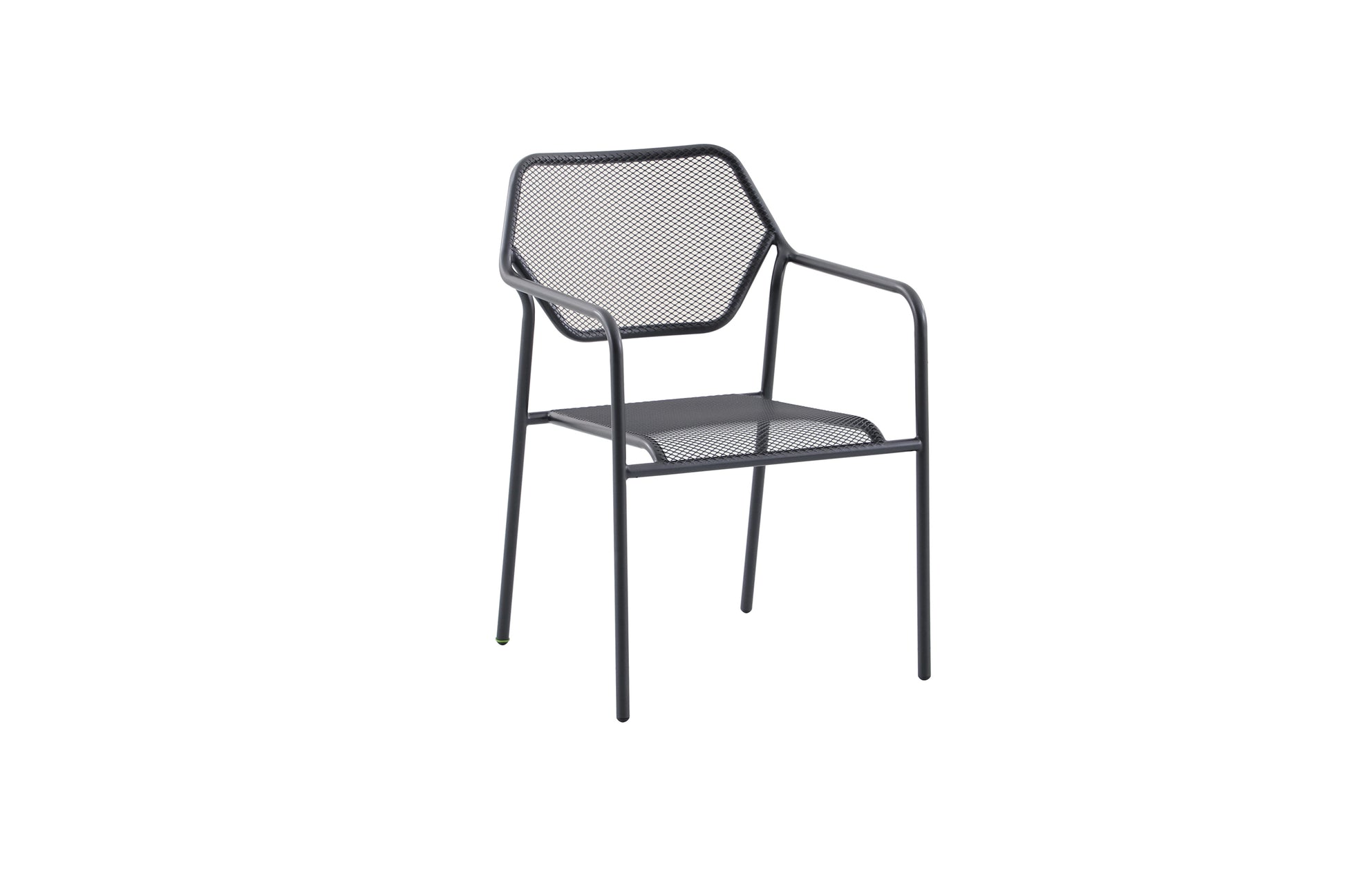 Moderne Formen kennzeichnen diesen Stuhl aus Streckmetall.