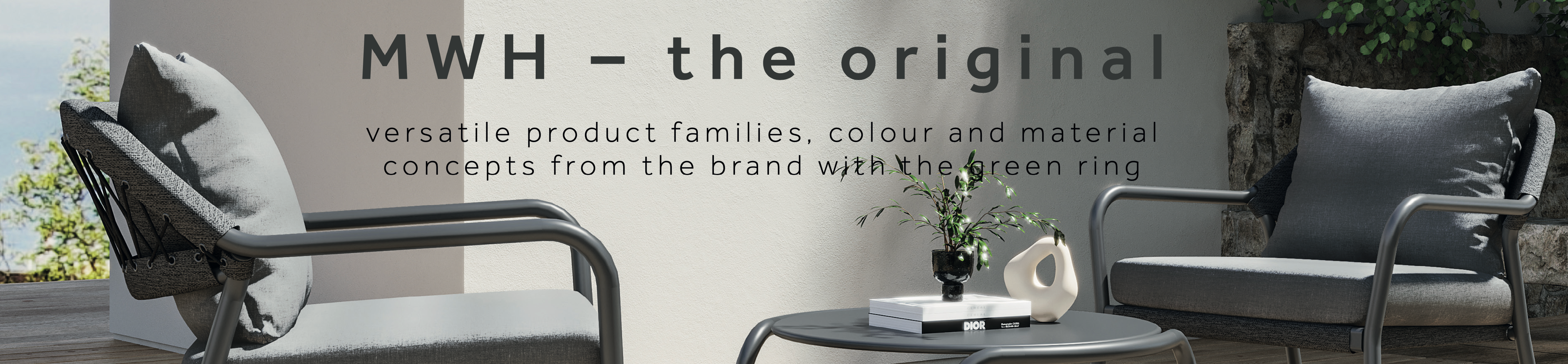 MWH – the original. Simply closer to life so that a break from everyday life on the balcony and terrace or in the garden remains exceptionally relaxing at any time: with versatile product families, colour and material concepts from the brand with the green ring.
