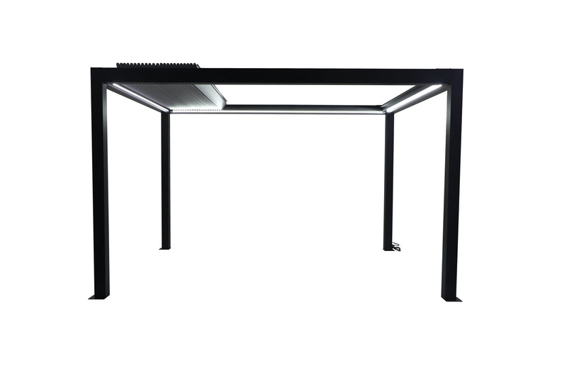 Electric shutter Gazebo with remote controll and APP and LED lighting in various different colours.