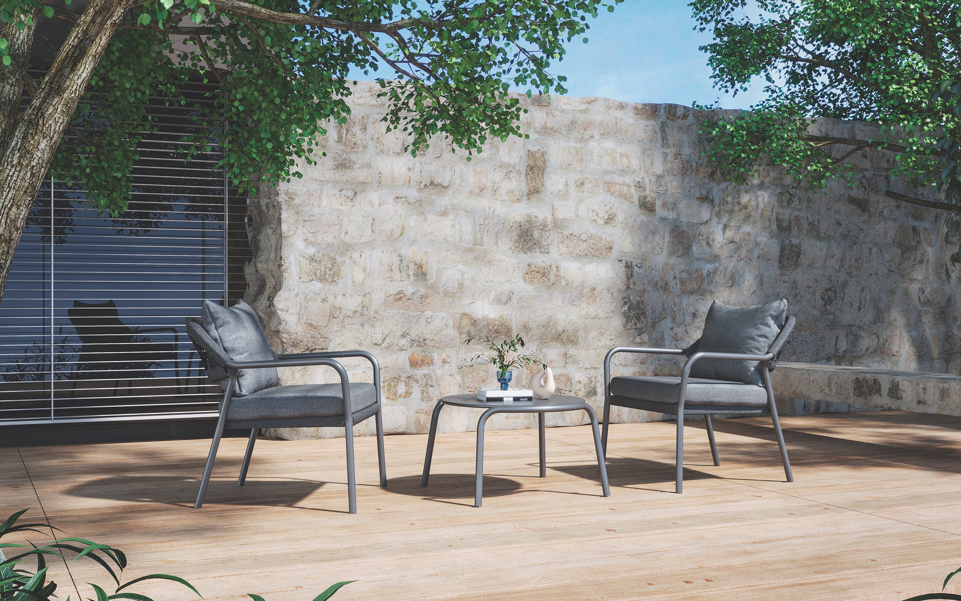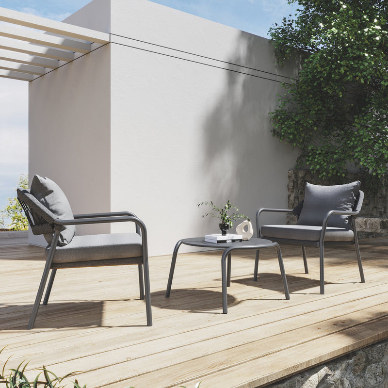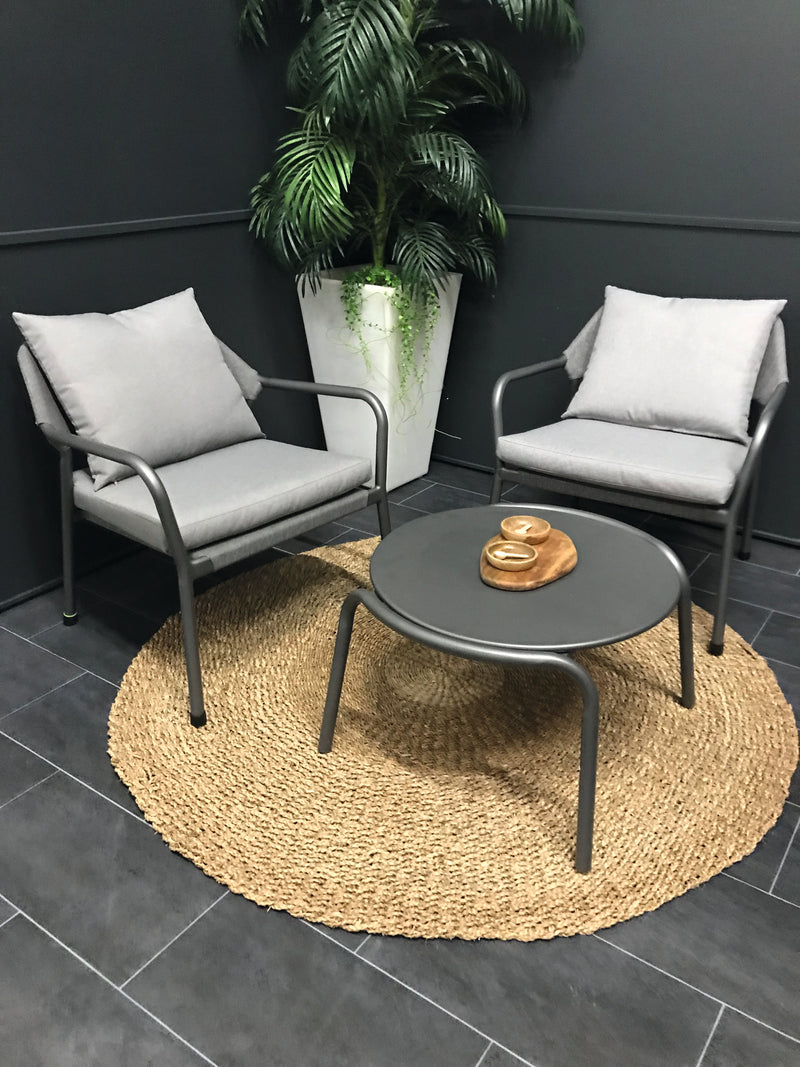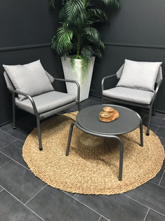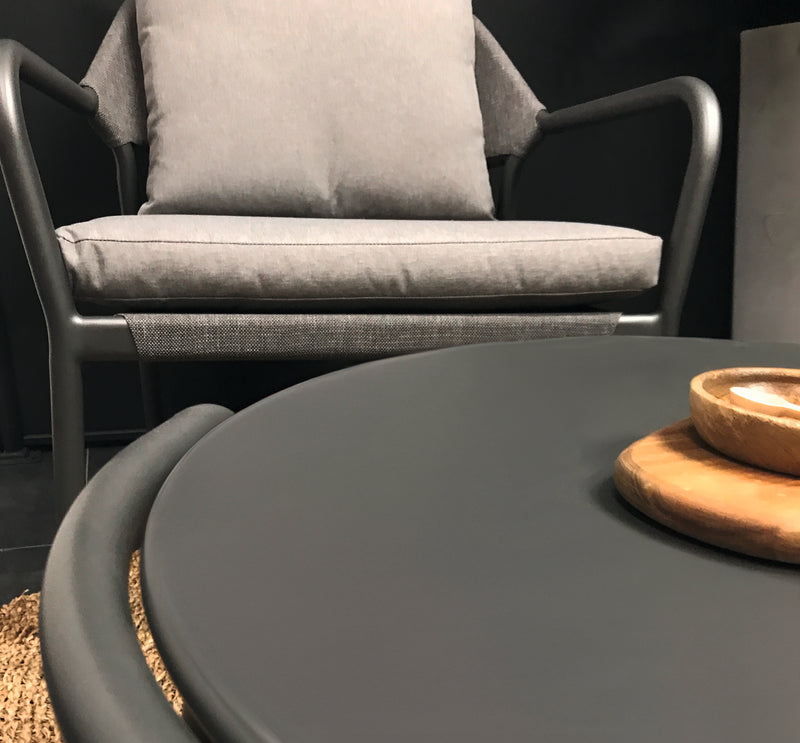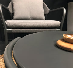 Modern shapes and discreet colouring characterize the Anderno series. The ropes that hold the Textilene to the backrest are a special eye-catcher. Their bend, as well as armrests and colour-coordinated seat cushions, ensure pleasant seating comfort. Matching tables for dining chairs and as part of the lounge set complete the stylish series.