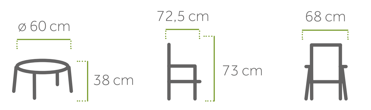 Dimensions Armchair: L72.5 x W68 x H73 cm