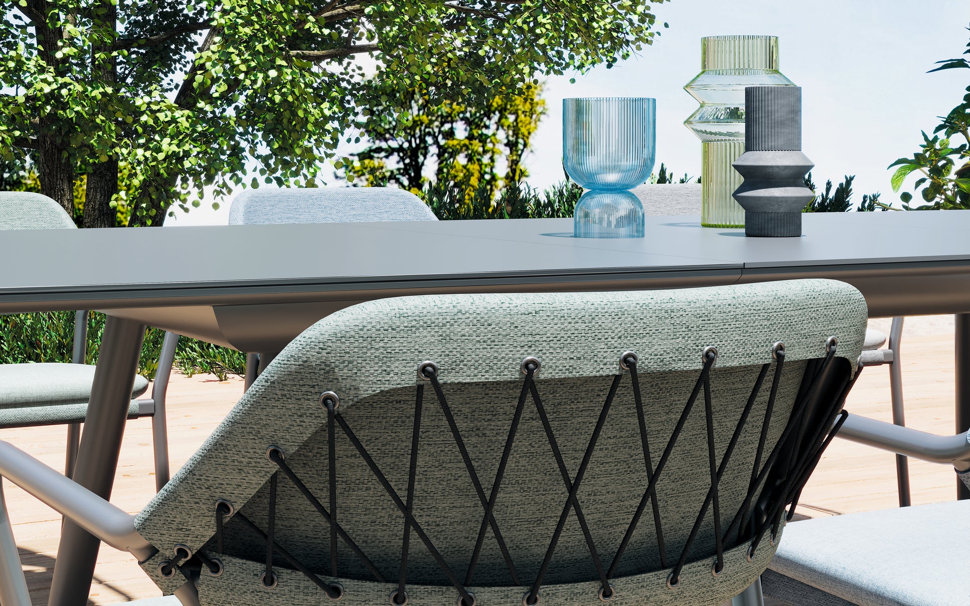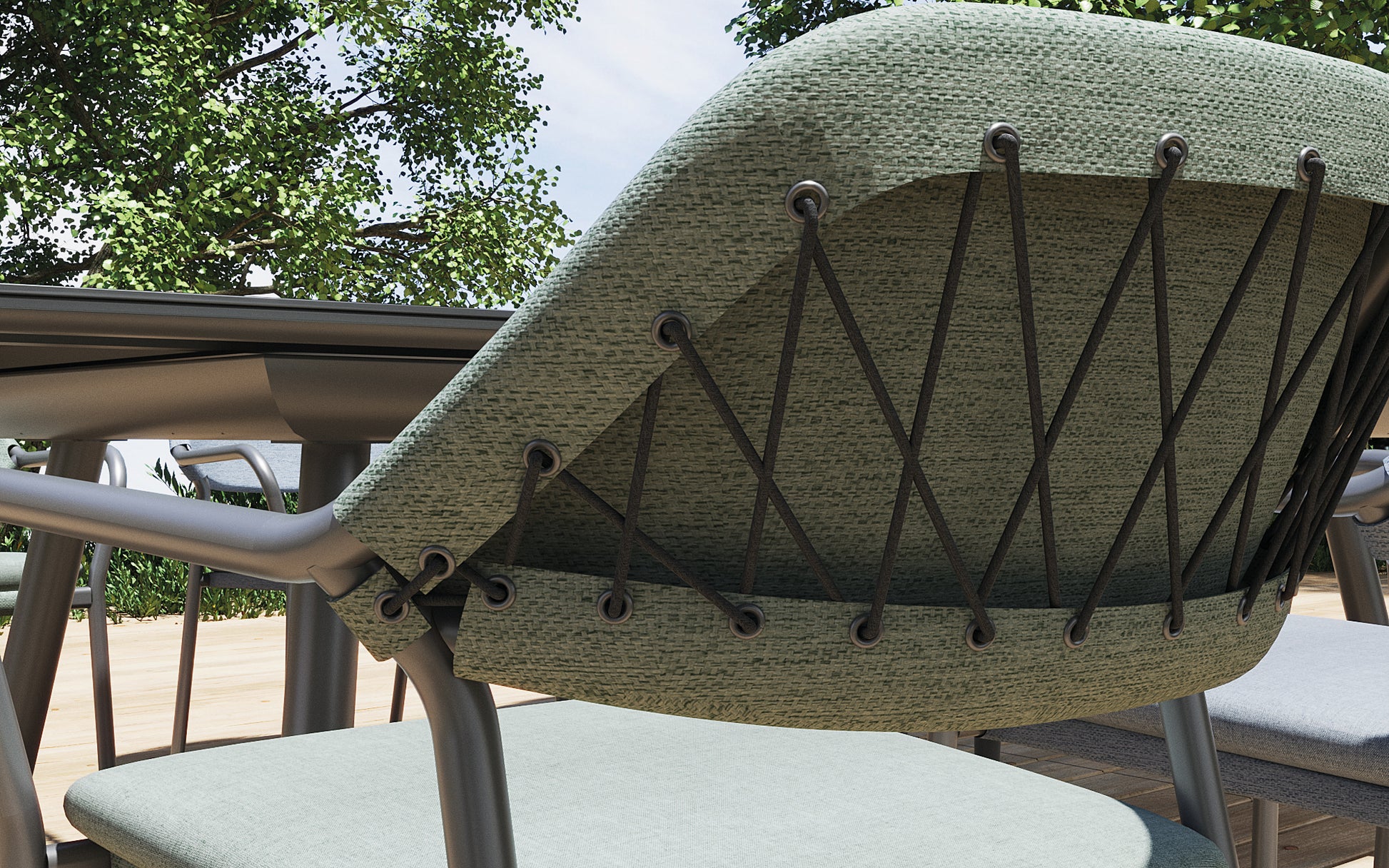 Modern shapes and discreet colouring characterize the Anderno series. The ropes that hold the Textilene to the backrest are a special eye-catcher.