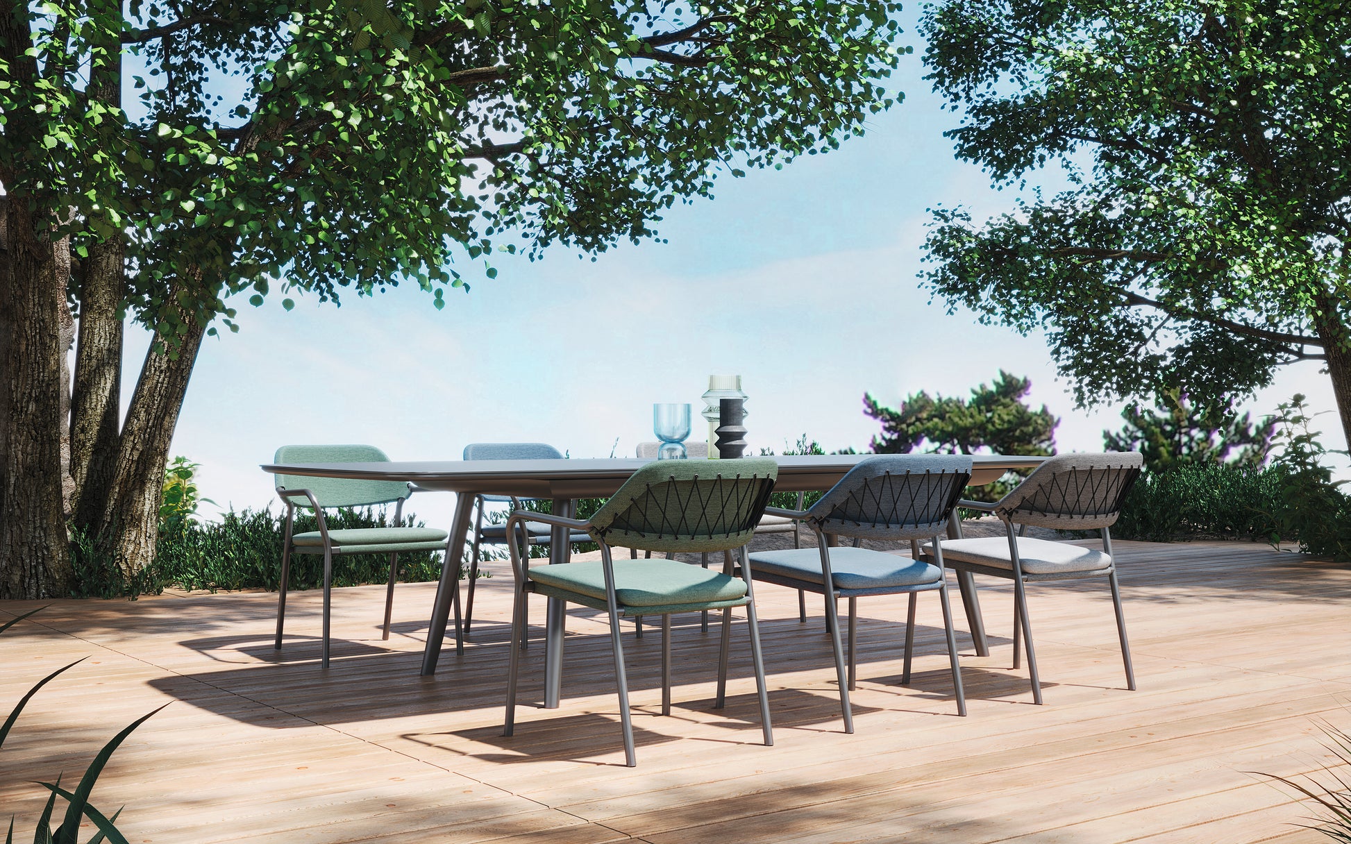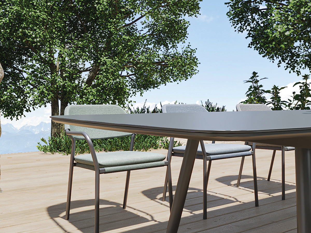 Modern shapes and discreet colouring characterize the Anderno series. The ropes that hold the Textilene to the backrest are a special eye-catcher.