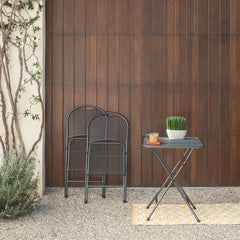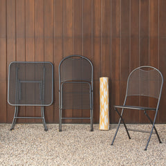 Life can be so simple. No space: No problem. With remarkable ease Café Latte turns particularly small areas into big events. The expanded metal set comprising a folding table as well as two foldable chairs thereby focuses on pure urban simplicity from each angle.