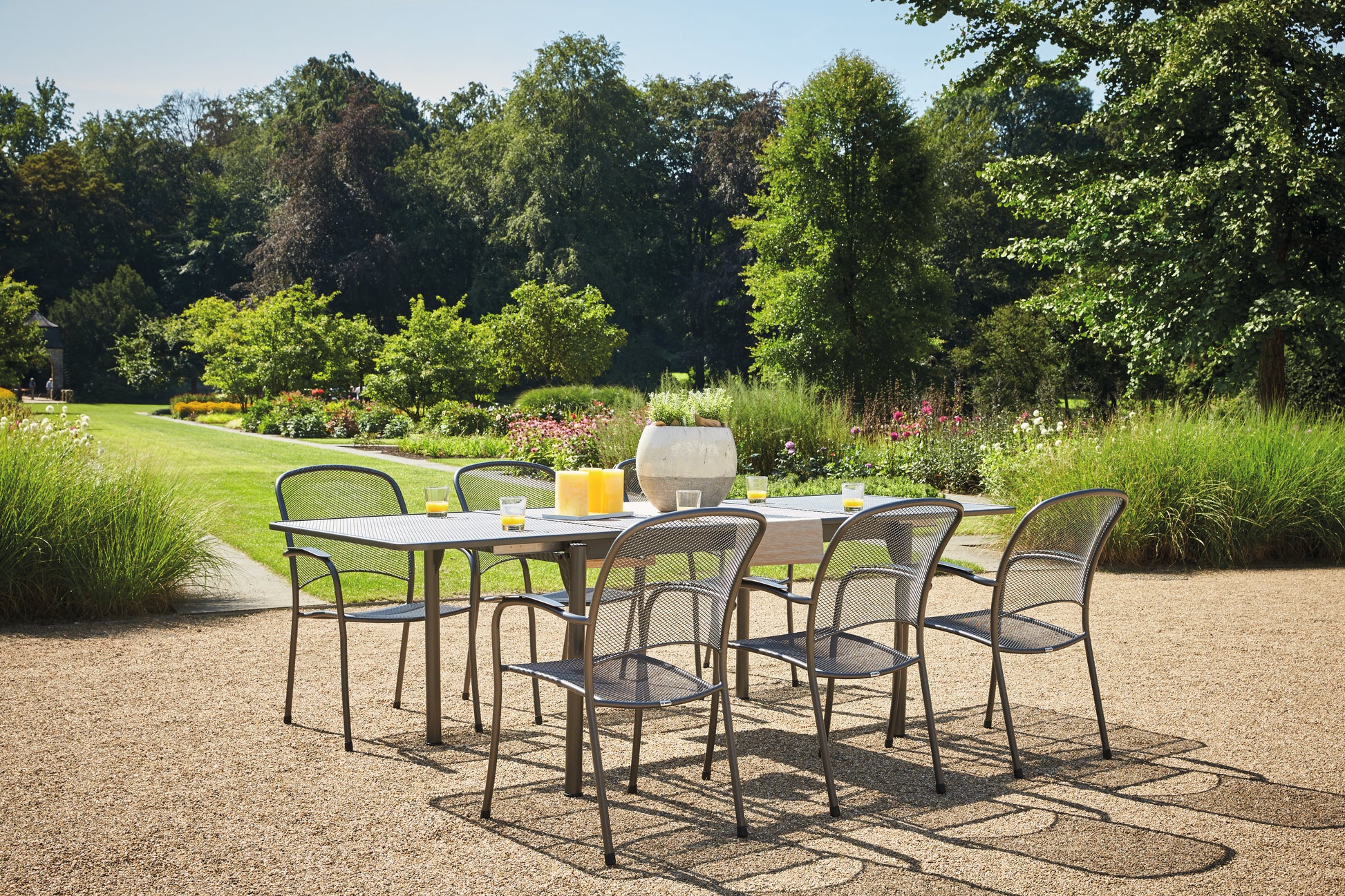 Practical, comfortable and a timeless classic in the range from MWH The Original: breezy and ergonomically designed expanded metal with sweeping aesthetics make the stackable Carlo into a easy to care for and weather resistant style icon, jauntily conveying the light- ness of being. Standing unimpressed with short-lived trends. Instead of this rather emphasising light-footed features of substance itself.
