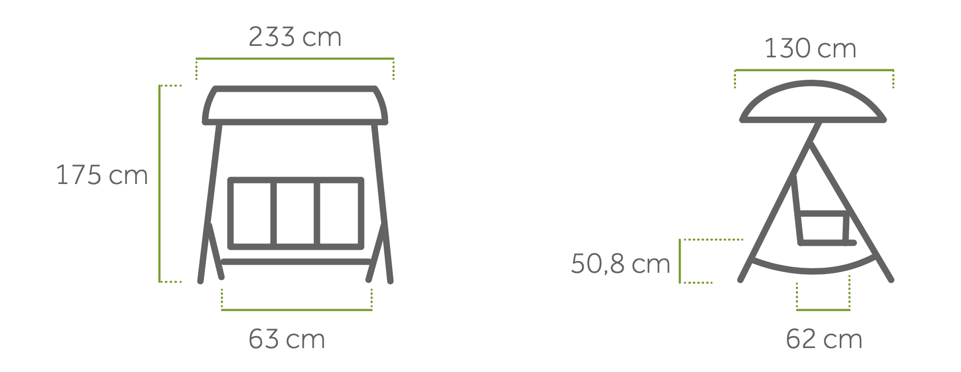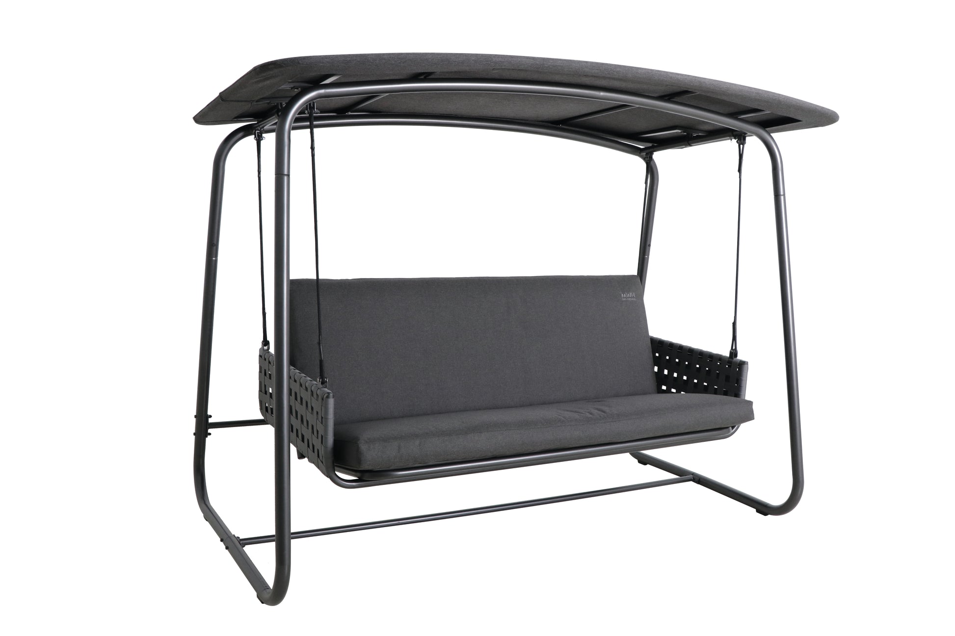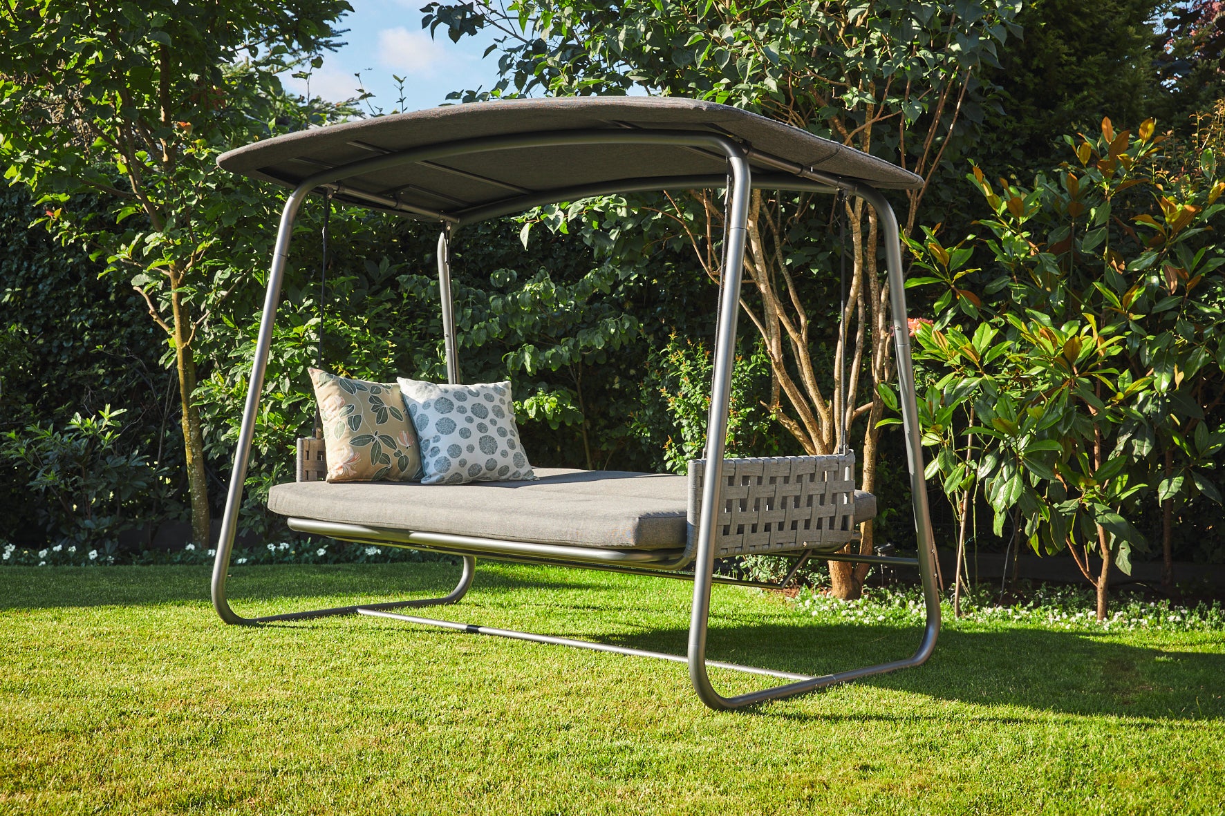 Stylish and inviting to relax, the Hollywood swing Crossado blends into its natural surroundings. The frame discreetly gives way visually to the modern, coarse-banded wickerwork with a natural look and feel. The soft cushions in stone-colored light grey also create a natural look. The Hollywood swing is weather resistant and easy to clean. A dream for any garden or terrace.