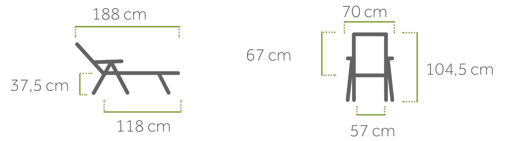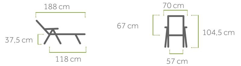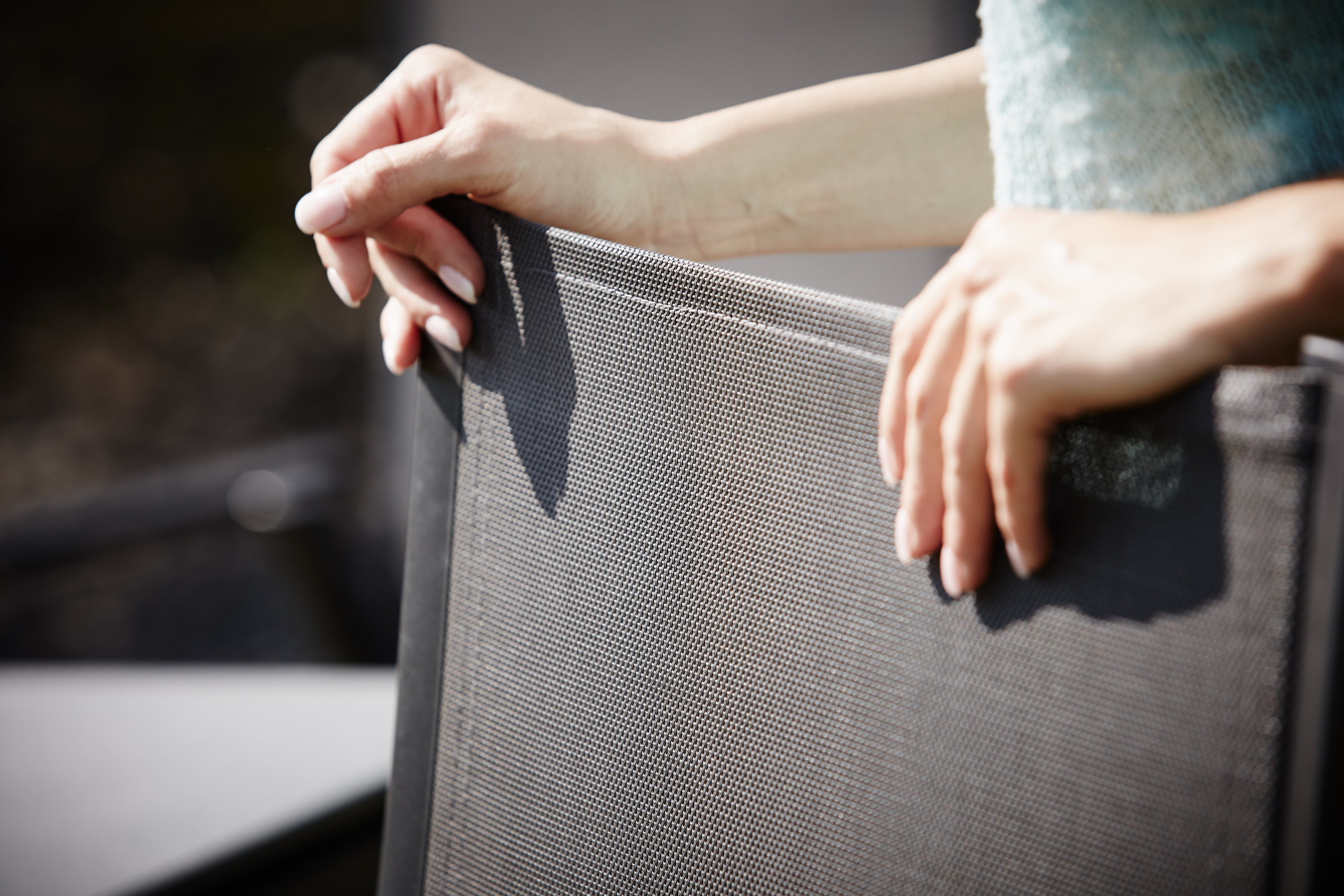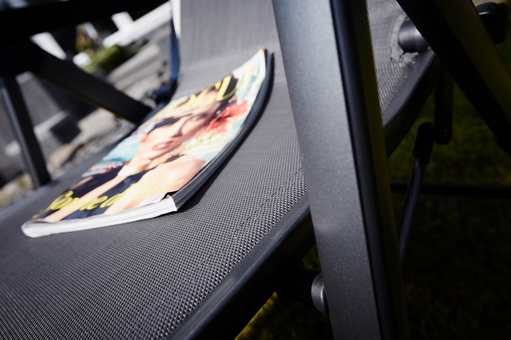 Aluminium Lounger, seat made of Textilene, five-way adjustable