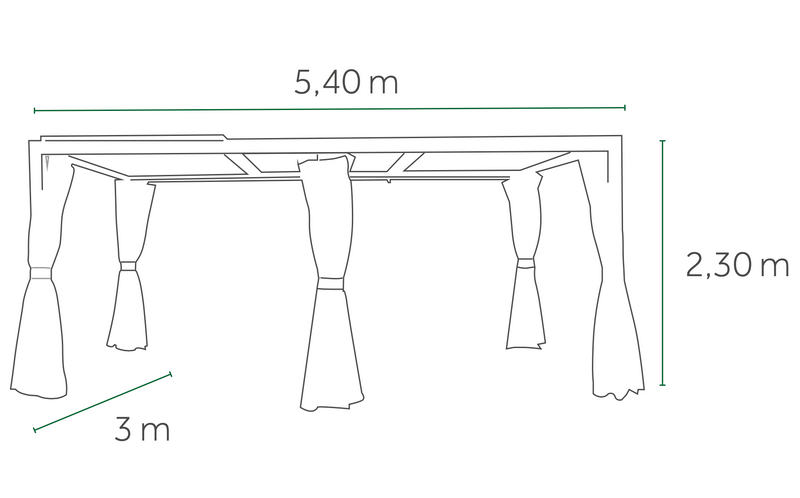 Dimensions: 5,40 m x 3 m x 2,30 m
