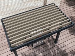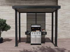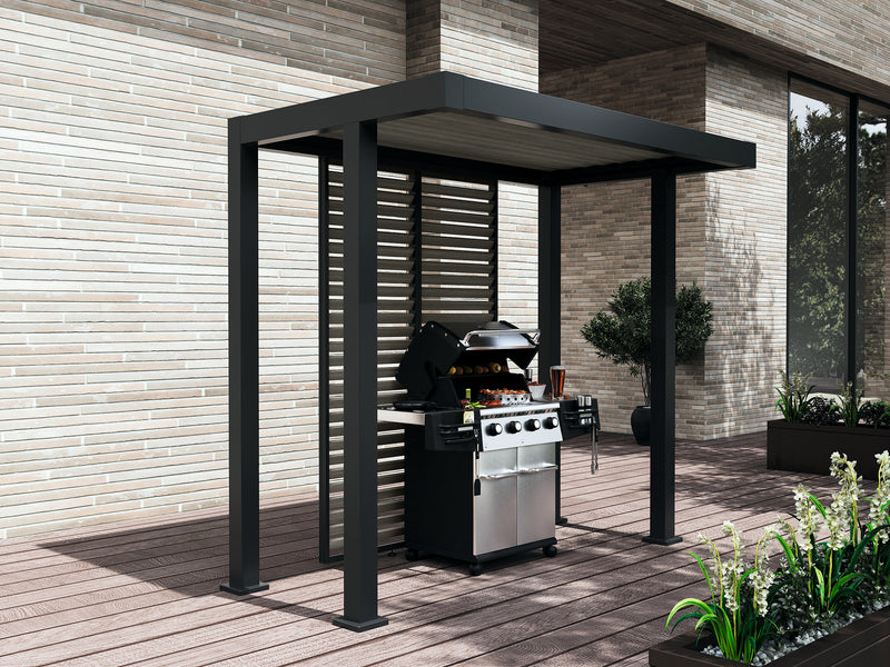 Grillzebo impresses with its modern design and simple functionality. Firmly anchored in the ground, its practical size means it can be positioned in a variety of ways. Whether in the middle of the garden, on terraces or close to the building - at the intended location for the gas barbecue, Grillzebo offers a structured surface that can also provide protection from light rain showers or annoying sun rays.