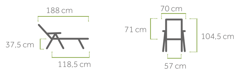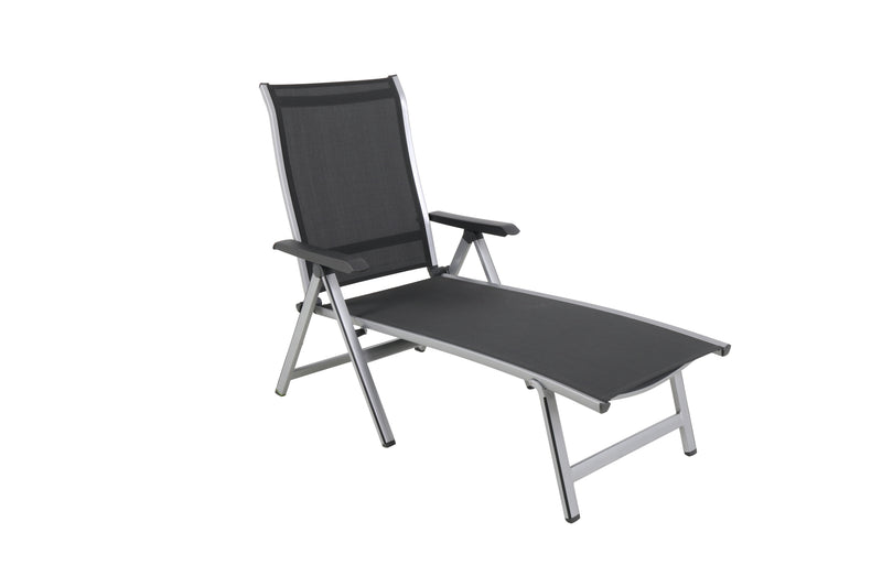 Aluminium Lounger, seat made of Textilene, five-way adjustable and foldable