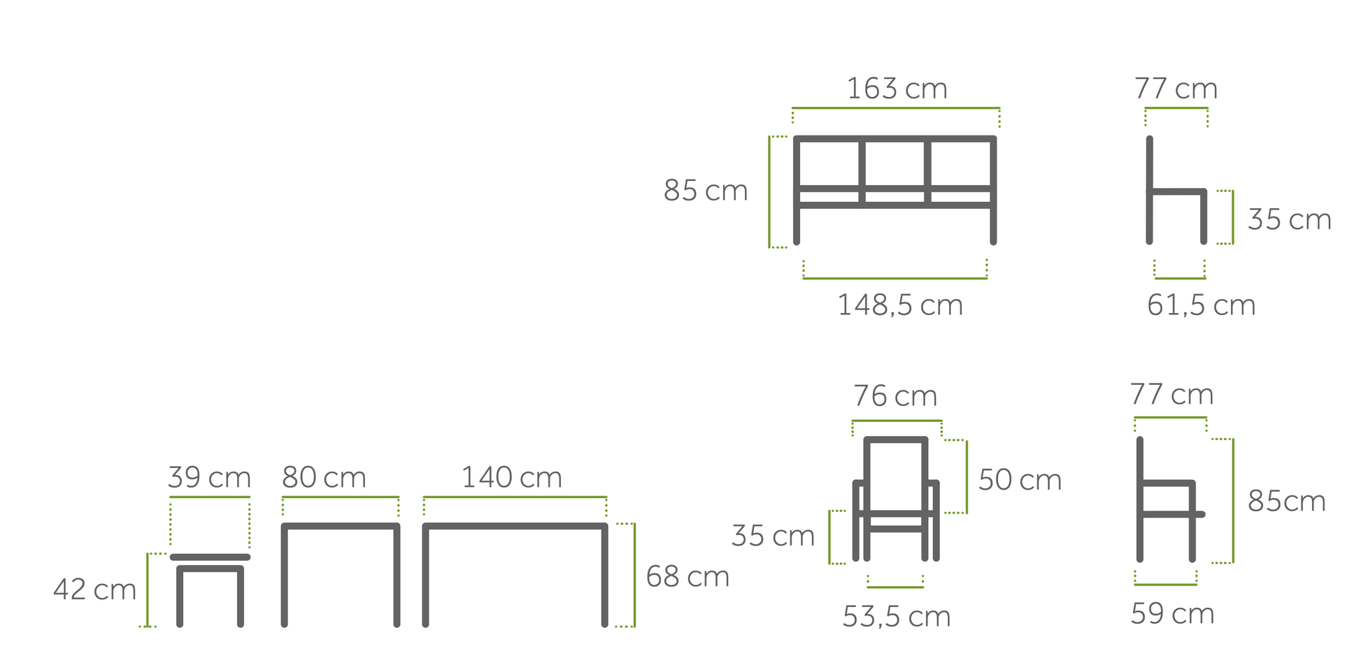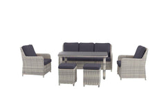 Aluminium wicker sofa set consisting of one 3-seater sofa, 2 armchairs, 2 stools and 1 dining table with Creatop Lite glass tabletop with Granite look
