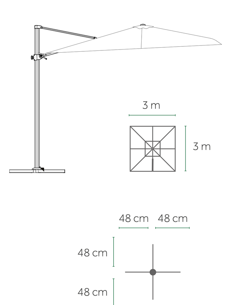 Hanging parasol, 360 degree rotatable, with cross base, 220g polyester, UV50+