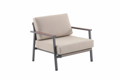 The Prado armchair can complement the sofa set, which includes two 2-seater sofas and two tables. All pieces are characterised by elegant design elements: the ends of the seat and backrests are rolled up, which gives a stylish look and adds to the seating comfort. In addition, all Prado furniture includes elements and armrests in a luxurious mahogany look.