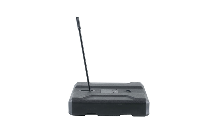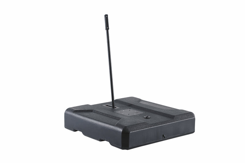 PVC base (26 kg) with lever bar and wheels for moving, for parasols 3 x 3 m and 4 x 3 m. To be filled with sand or water for total 26kg base weight.