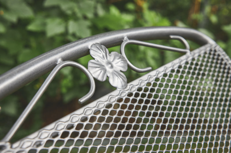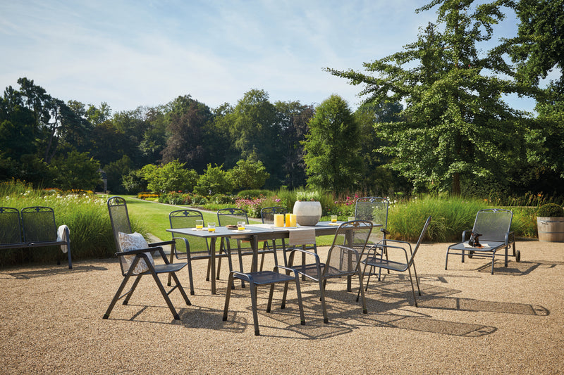 Floral evergreen - Savoy has long been the bestseller at MWH. Savoy adorns contemporary design aspects with a hint of nostalgia. Expressive and rustic, however at the same time lively and playful. The floral décor element in the backrest edge in all parts of the comfortable series is not only a flowery distinguishing feature. It gives the series, made of airy expanded metal, an unusuallysunny touch, making it almost seem like summer is everlasting – just like the popularity of this MWH classic.