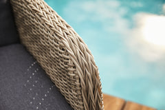 Wickerwork on trend - With the Verando set, MWH continues the current trend towards wickerwork furniture. The noble plastic wickerwork cuts a fine figure both in the conservatory and outdoors. The compact furniture is weather-resistant and absolutely easy to clean. The set consists of two armchairs, a 2-seater sofa, a coffee table and the Verando sun lounger.