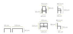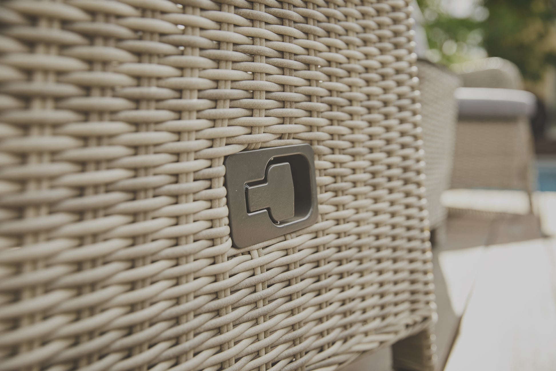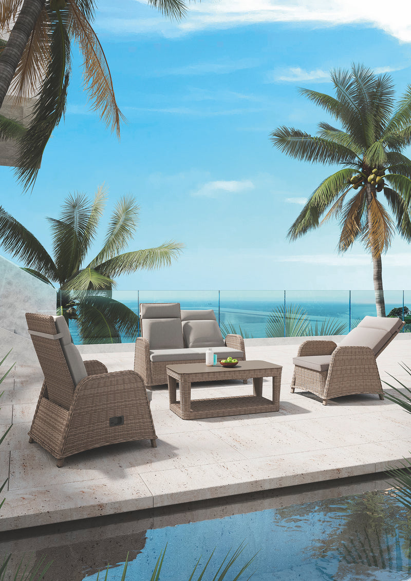 Aluminium wicker Sofa Set consisting of one 2-seater sofa and two single sofas with adjustable backrests and one low dining table